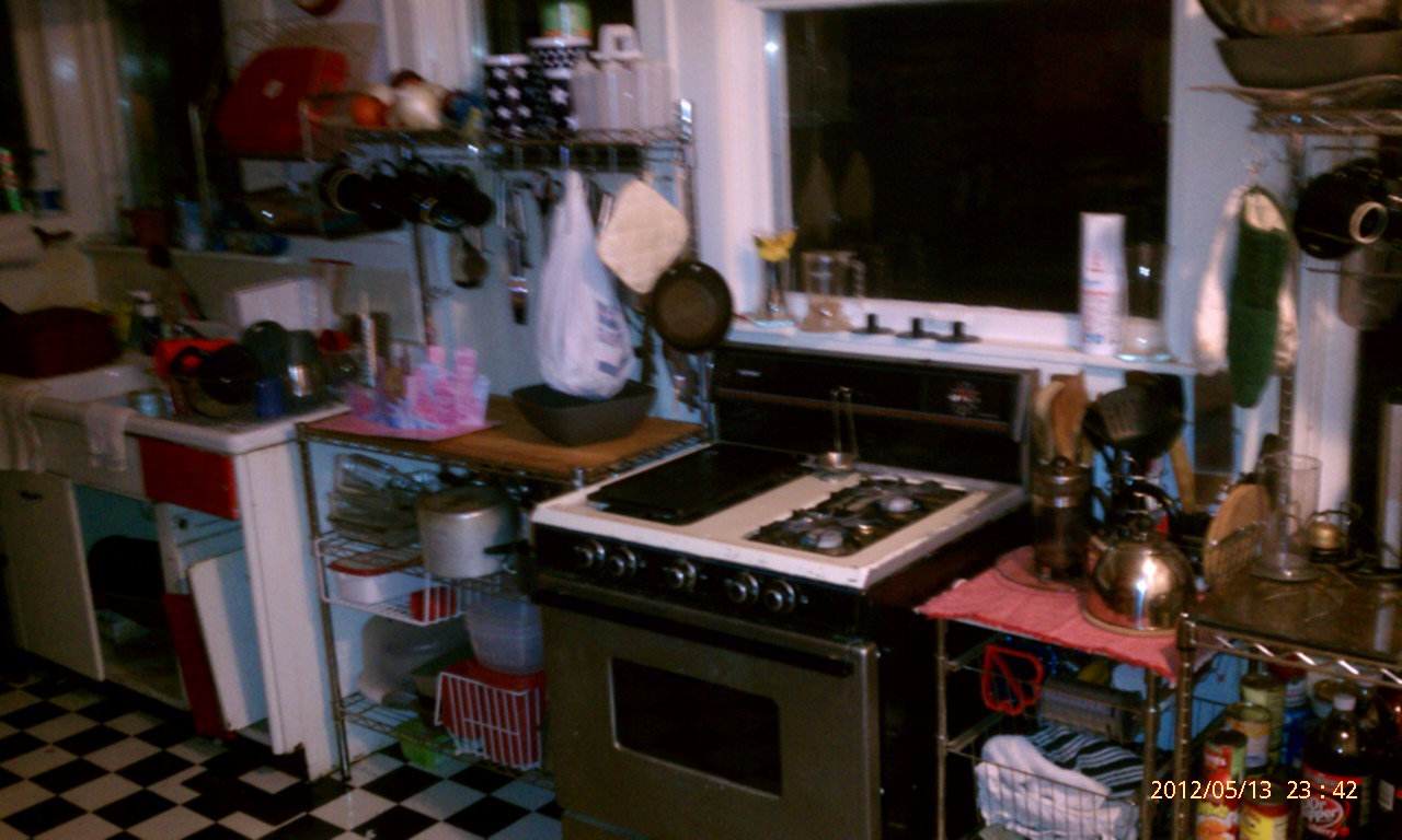 - The kitchen door was set in the hallway, rather than in the dining room, probably to accommodate an existing coal cook stove (left hand side orientation of the stack, probably, and perhaps a right hand side access for the ash or coal? Wish I knew!).